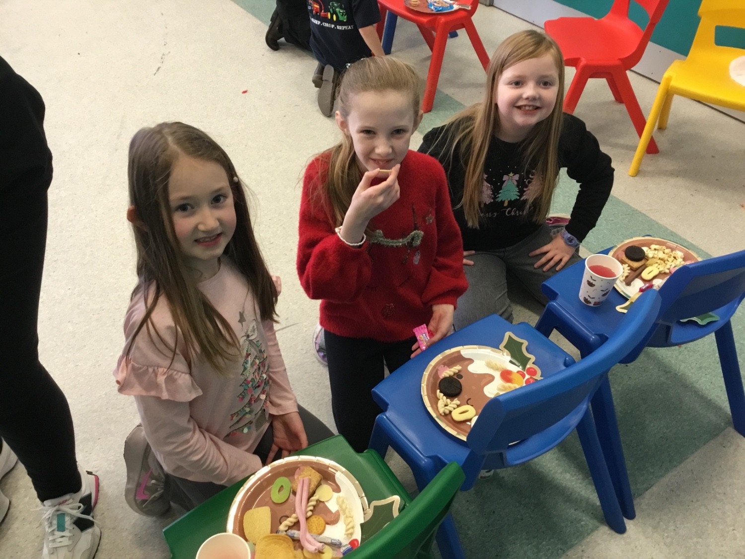 We have had lots of fun during our last week of term. On Monday we went to the assembly hall to Junior Entrepreneur Day. It was exciting to bring some money to school for spending at the stalls. Everyone in P6 and P7 worked very hard and we all loved what we bought. On Tuesday we had a movie day I’m the assembly hall and on Wednesday Mrs King treated our class to a special break. We had hot chocolate or juice and lots of nice biscuits and buns. Thank you Mrs King. On Thursday we had our Christmas party with the children from Mrs Speers and Mrs Walker’s classes. Merry Christmas everyone!